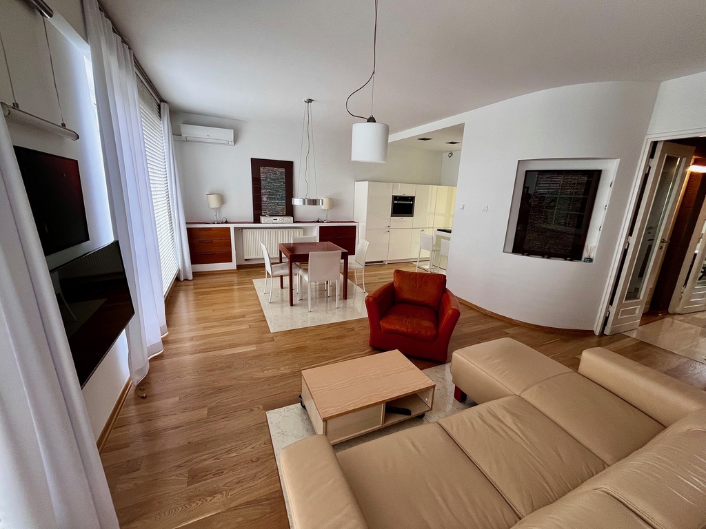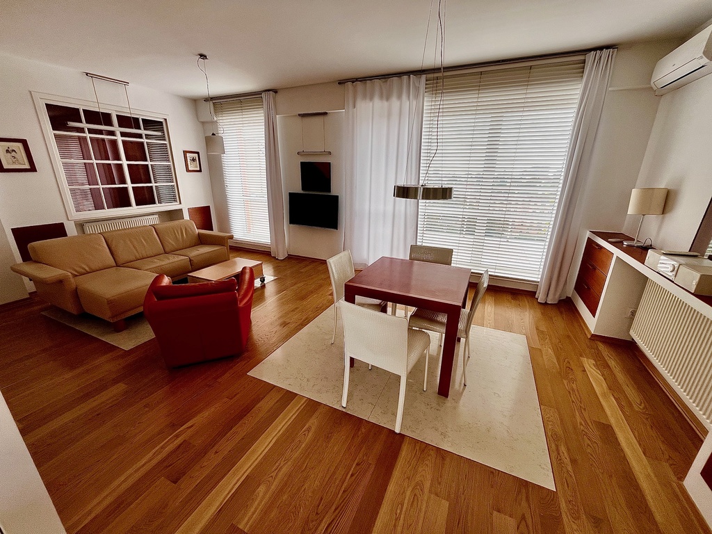 Mieszkanie posiada klimatyzację jest możliwość pozostawienia pełnego umeblowania apartamentu .