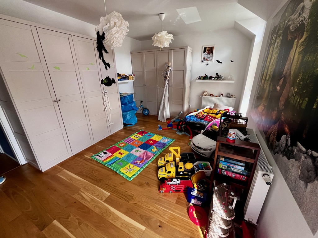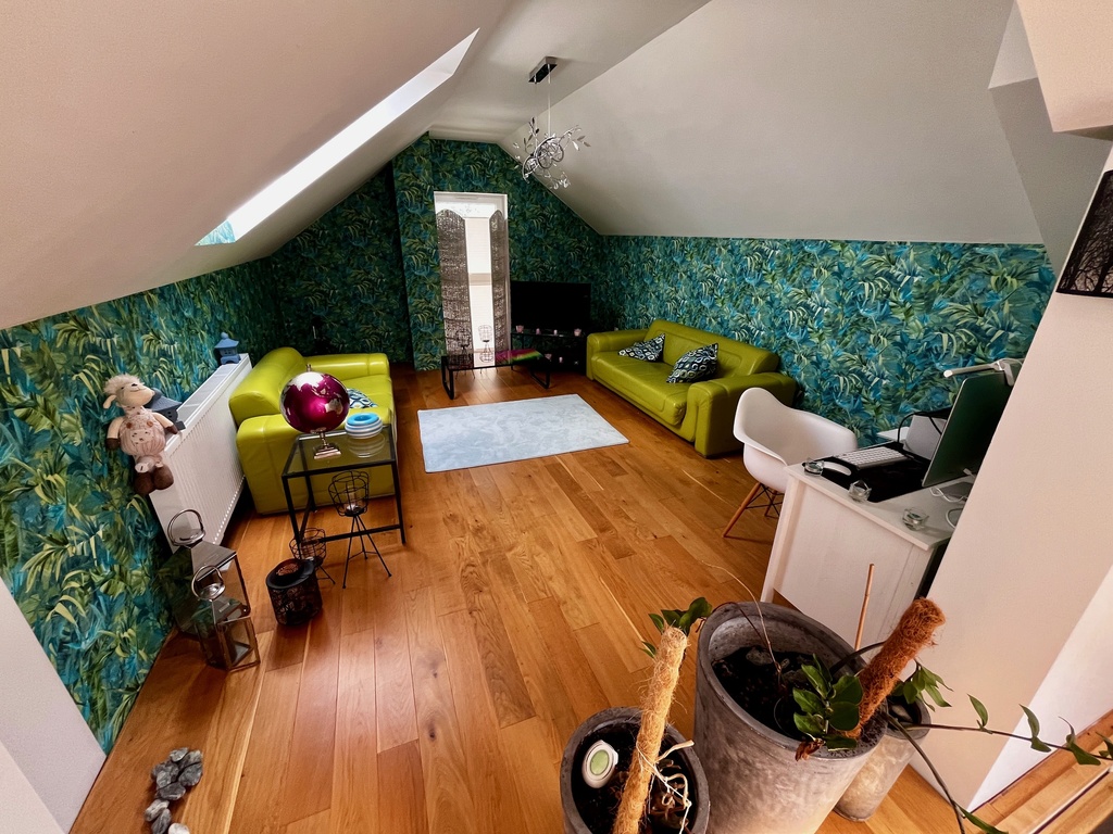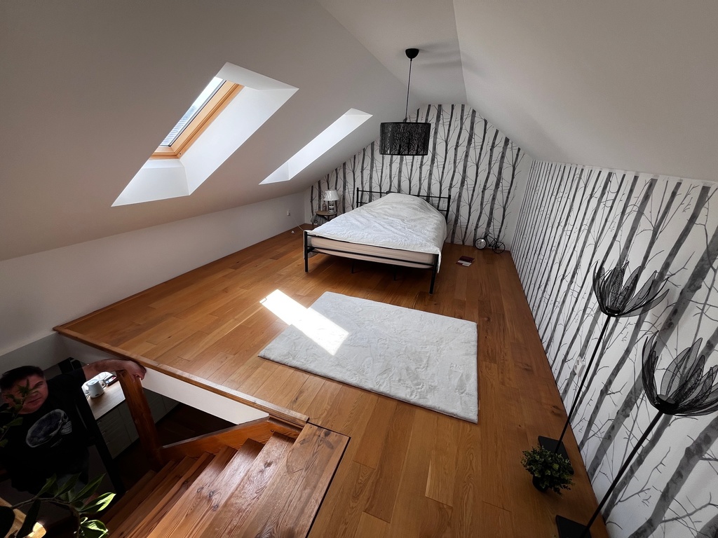 Mieszkanie posiada poddasze, gdzie znajdują się dwie przestronne sypialnie np. dla dzieci.(obecnie jest to przestrzeń otwarta)