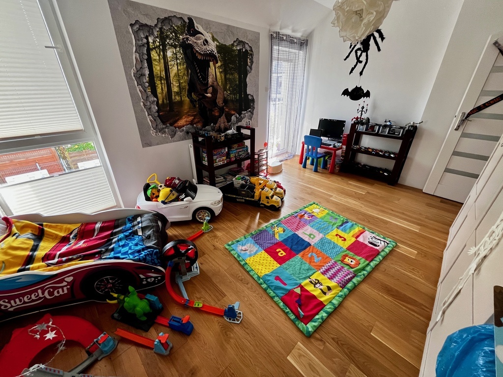 Mieszkanie posiada poddasze, gdzie znajdują się dwie przestronne sypialnie np. dla dzieci.(obecnie jest to przestrzeń otwarta)