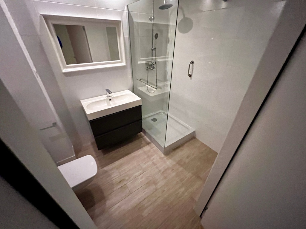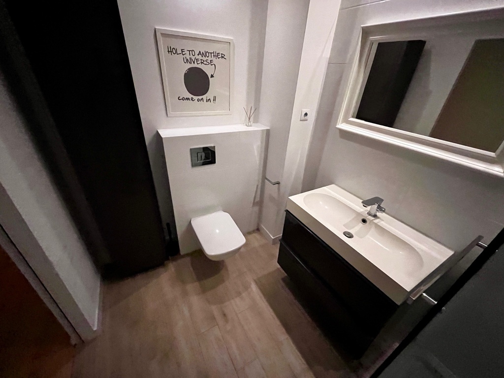 - elegancko wykończona łazienka z prysznicem, umywalką i toaletą