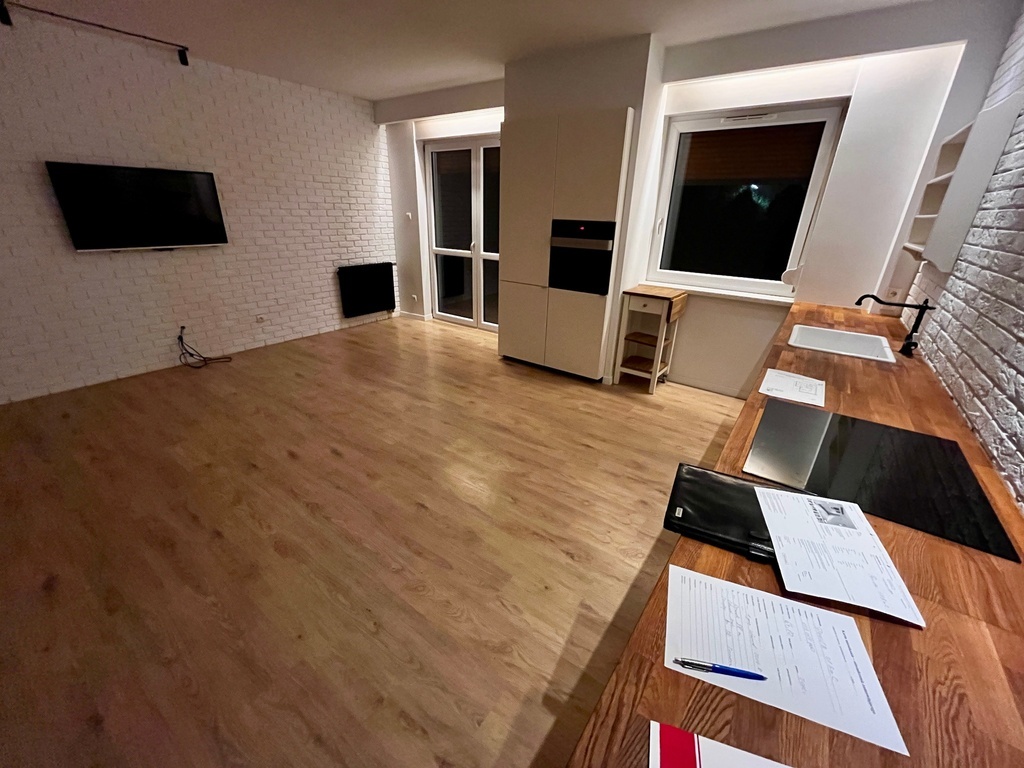 - salon z w pełni wyposażonym aneksem kuchennym (lodówka, piekarnik, zmywarka, płyta indukcyjna)
