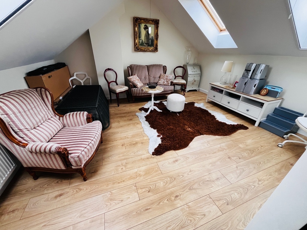 - rozświetlona sypialnia z 3 oknami dachowymi(19m)oddzielona od reszty domu przesuwnymi drzwiami