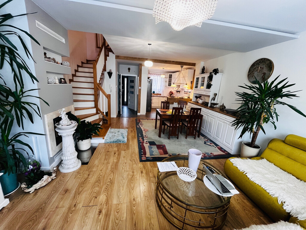 Dom w pełni urządzony, gotowy do zamieszkania. Do domu przynależy pomieszczenie dzielone z sąsiadem- spiżarnia, a pierwotnie pomieszczenie na kosze na śmieci.