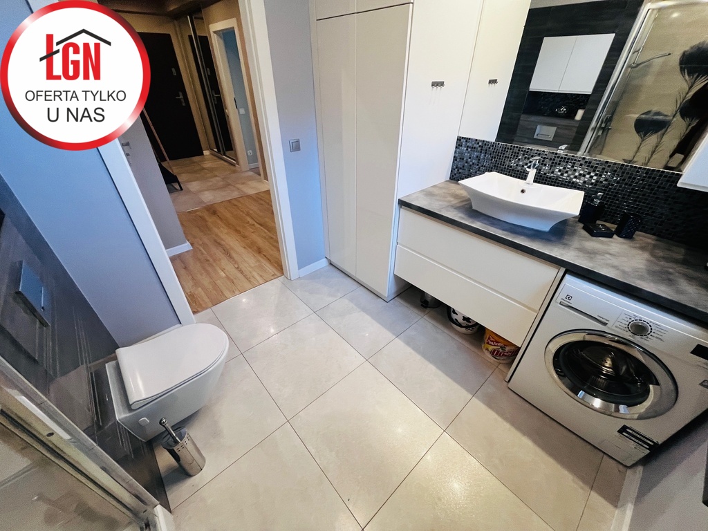 Mieszkanie z 2019r praktycznie nieużytkowane ,wykończone w wysokim standardzie wszystkie sprzęty praktycznie nowe ,meble kuchenne i łazienkowe ,szafy przesuwne w przedpokoju i sypialni ,szerokie parapety w formie blatów -robione na wymiar ,kompletny i wysokiej jakości sprzęt AGD wszystko zgodnie z aranżacja architekta -wszystko w cenie mieszkania