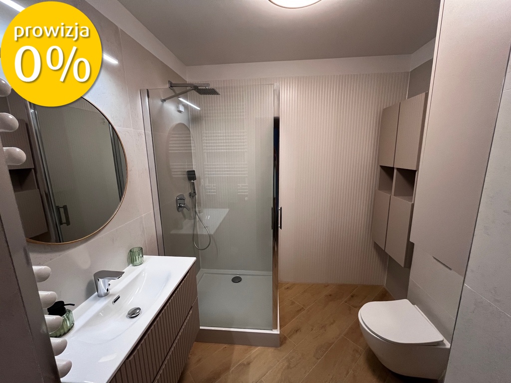 Lokal mieszkalny wykończony materiałami wysokiej klasy. Lokal na 2 piętrze, salon z aneksem kuchennym, sypialnia, łazienka z wc, przedpokój, garderoba z wejściem z sypialni. Kuchnia - zabudowa kuchni ze sprzętem agd Siemens, Bosch (zmywarka, lodówka, kuchenka mikrofalowa, płyta indukcyjna, piekarnik), łazienka wykończona gresami 120*60, armatura Grohe, Hans grohe, geberit z miską wc Grohe + bidetka pralko - suszarka Bosch, w garderobie przy sypialni meble na wymiar, w przedpokoju - szafa, pawlacze (meble na wymiar). Na posadzkach w przedpokoju i salonie gresy, w sypialni panele podwyższonej klasy + łóżko z nowym materacem. W mieszkaniu zamontowana klimatyzacja.