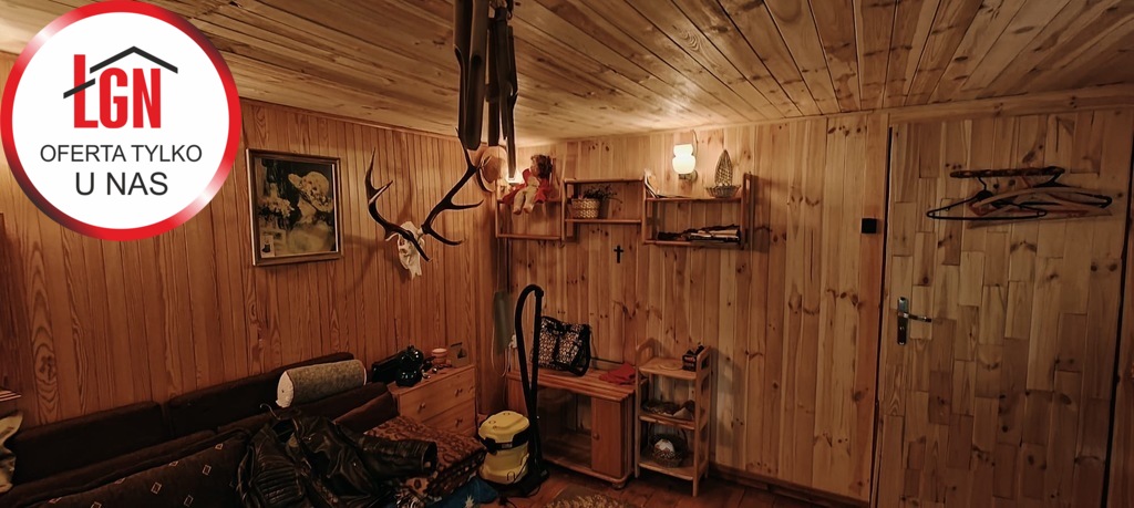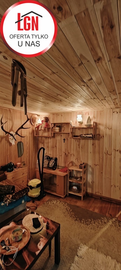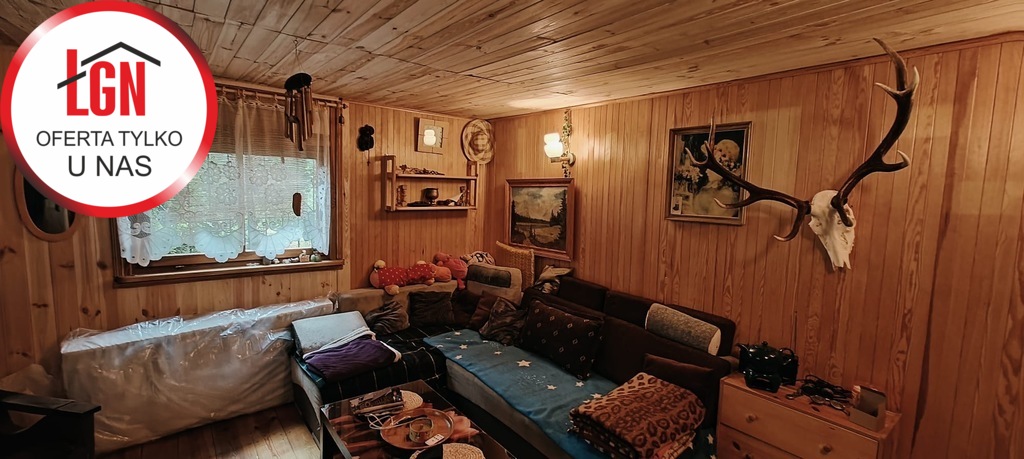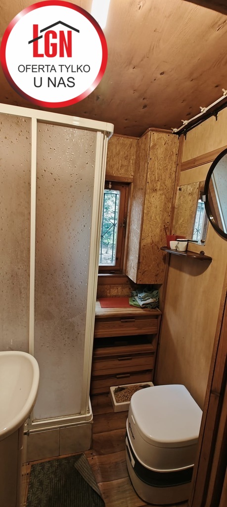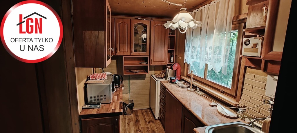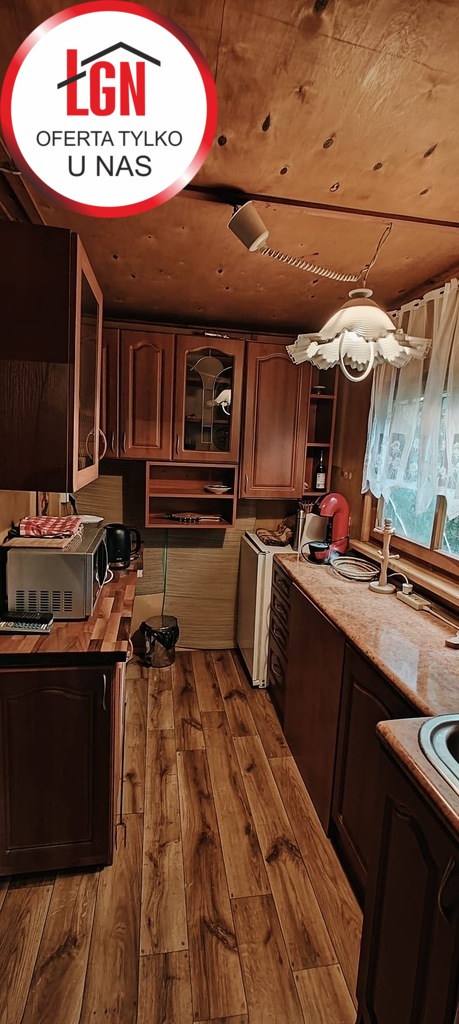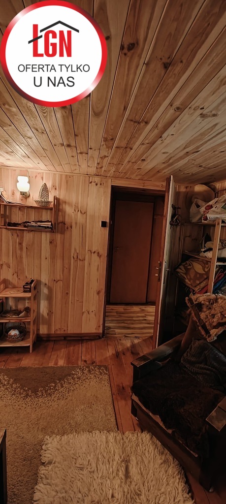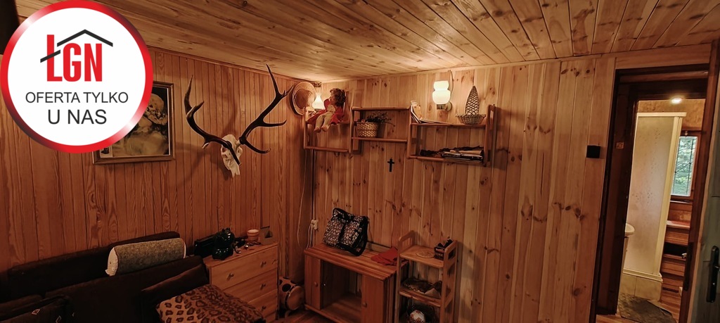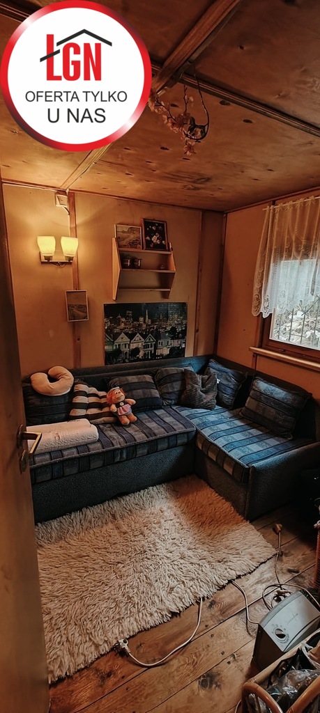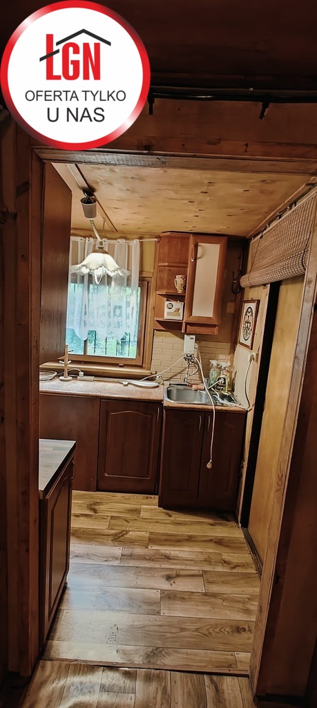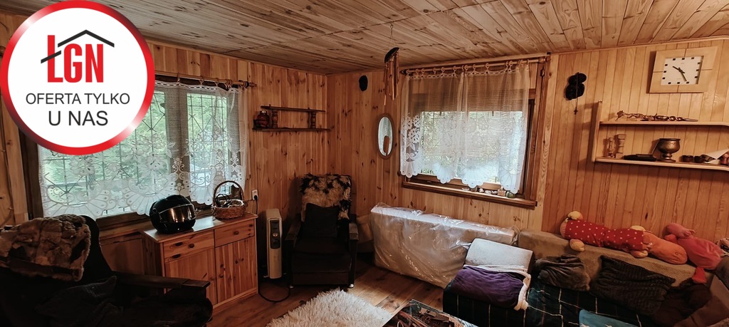 Domek letniskowy o powierzchni około 45 m2 drewniany z fundamentami z lat 80, dach pokryty papą. Składa się z 2 pokoi, aneksu kuchennego oraz łazienki ( bez WC)