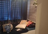 W pokoju dziennym na podłodze terakota , ściany gładzone pomalowane , wyjście na balkon typu loggia .