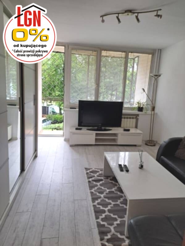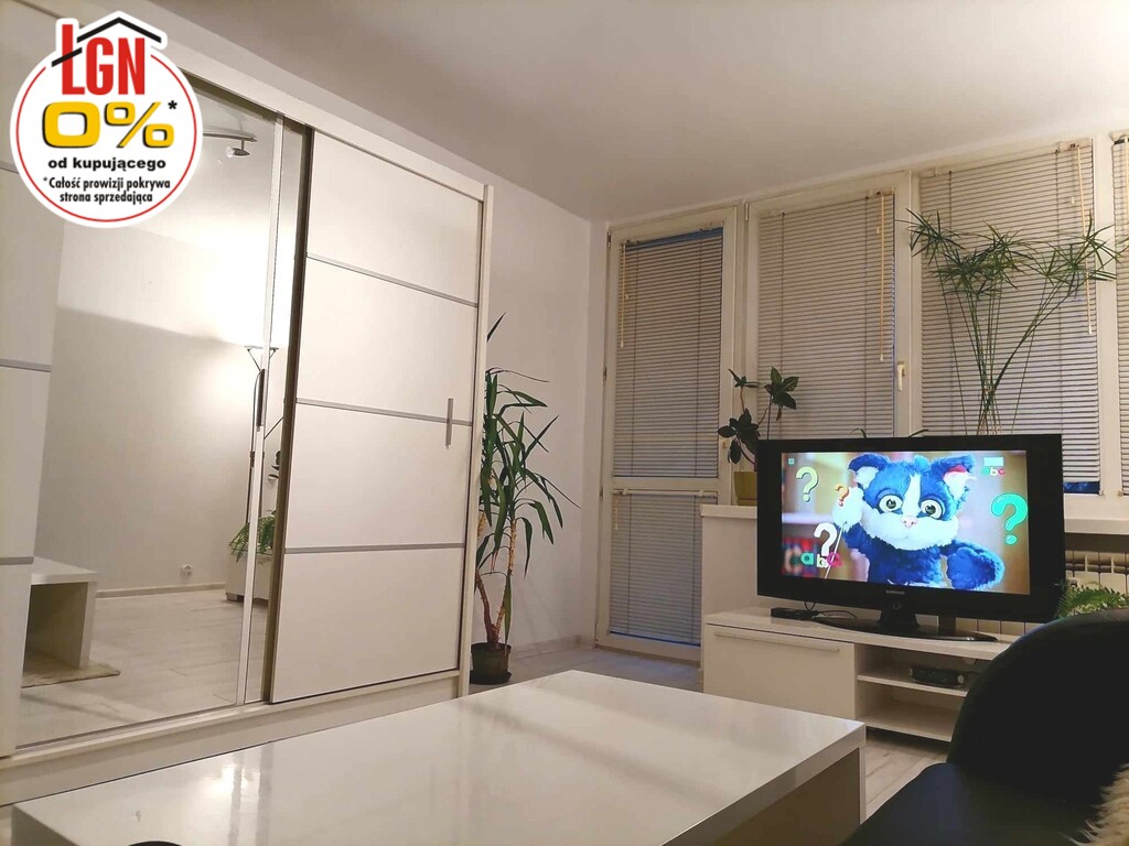 *1 pokój dzienny z balkonem na zachodnią stronę, wyposażony w kanapa z funkcją spania, ławę, dużą szafę, stolik rtv i telewizor, na podłodze panele, ściany gładzone pomalowane