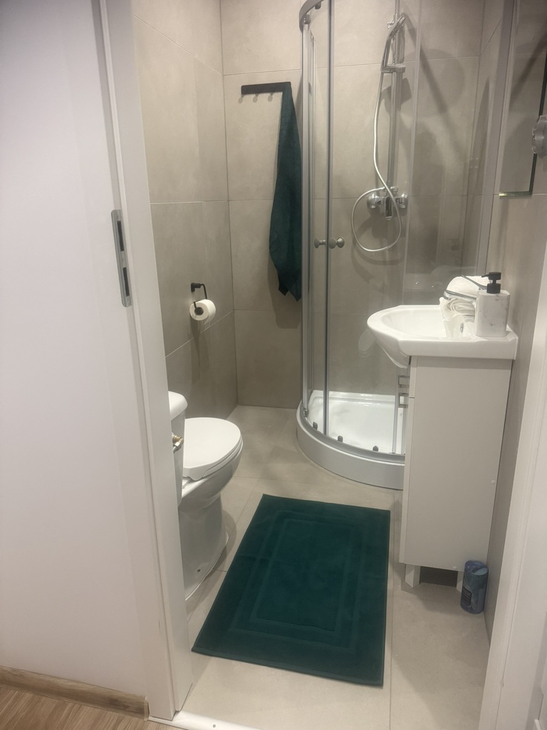 Łazienka z WC prysznic , glazura i terakota, świeżo wyremontowana