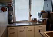 Kuchnia widna , na podłodze terakota, meble kuchenne z wyposażeniem