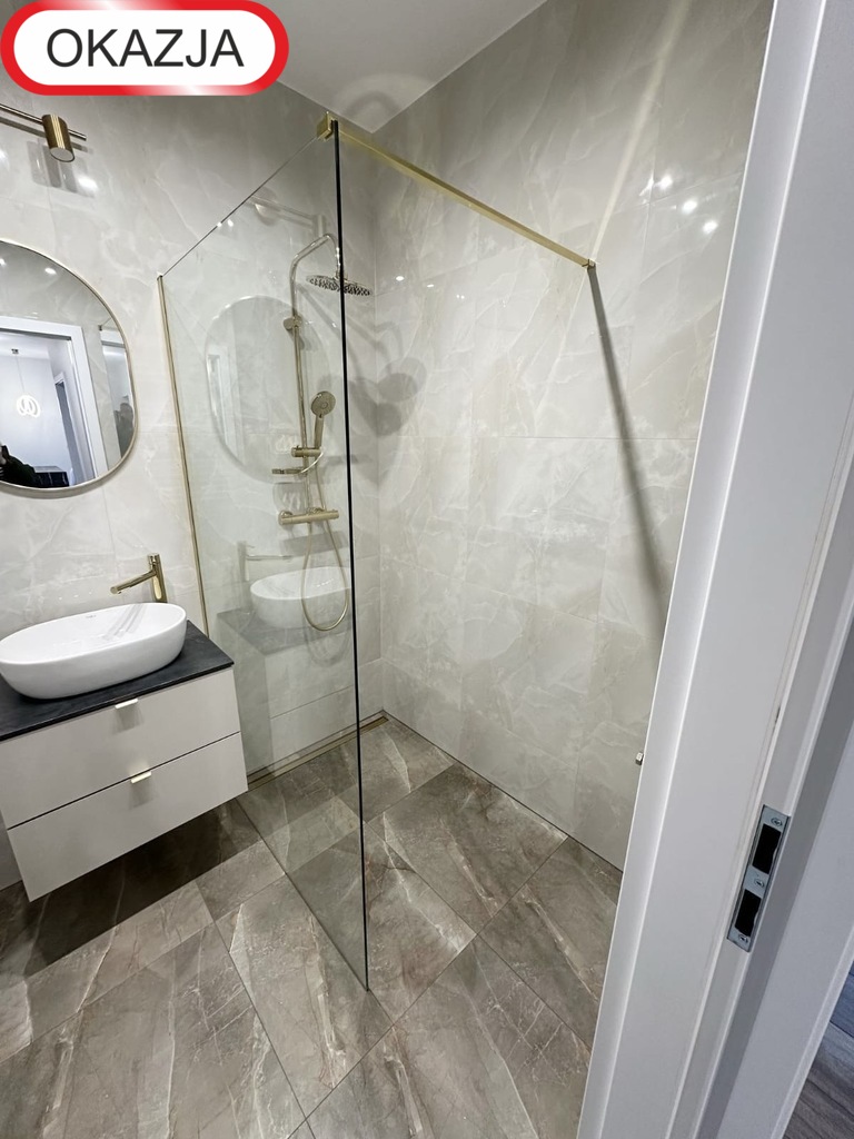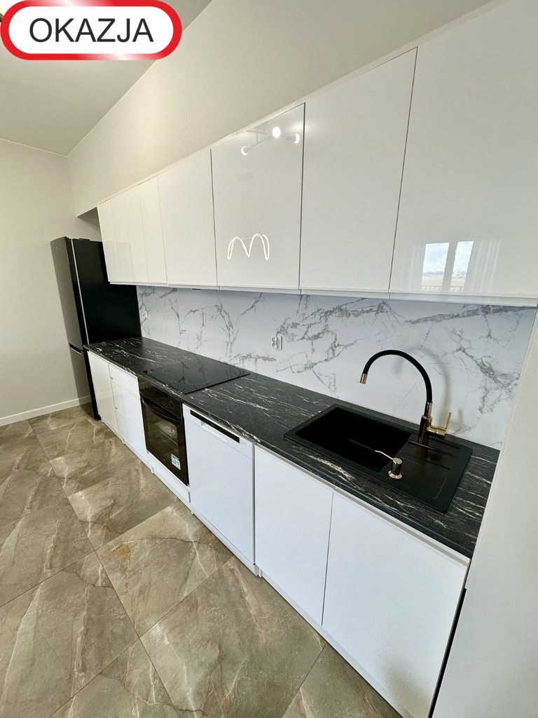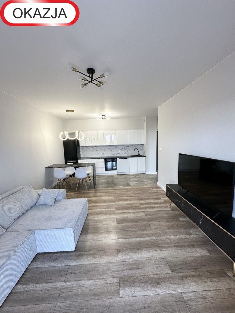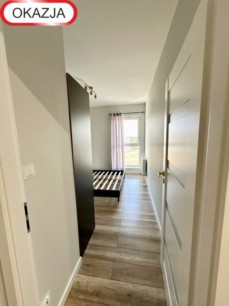 Mieszkanie składa się z trzech pokoi - przestronnego salonu z aneksem kuchennym, sypialni, dodatkowego pokoju, łazienki oraz korytarza i wykończone jest wysokiej jakości materiałami.