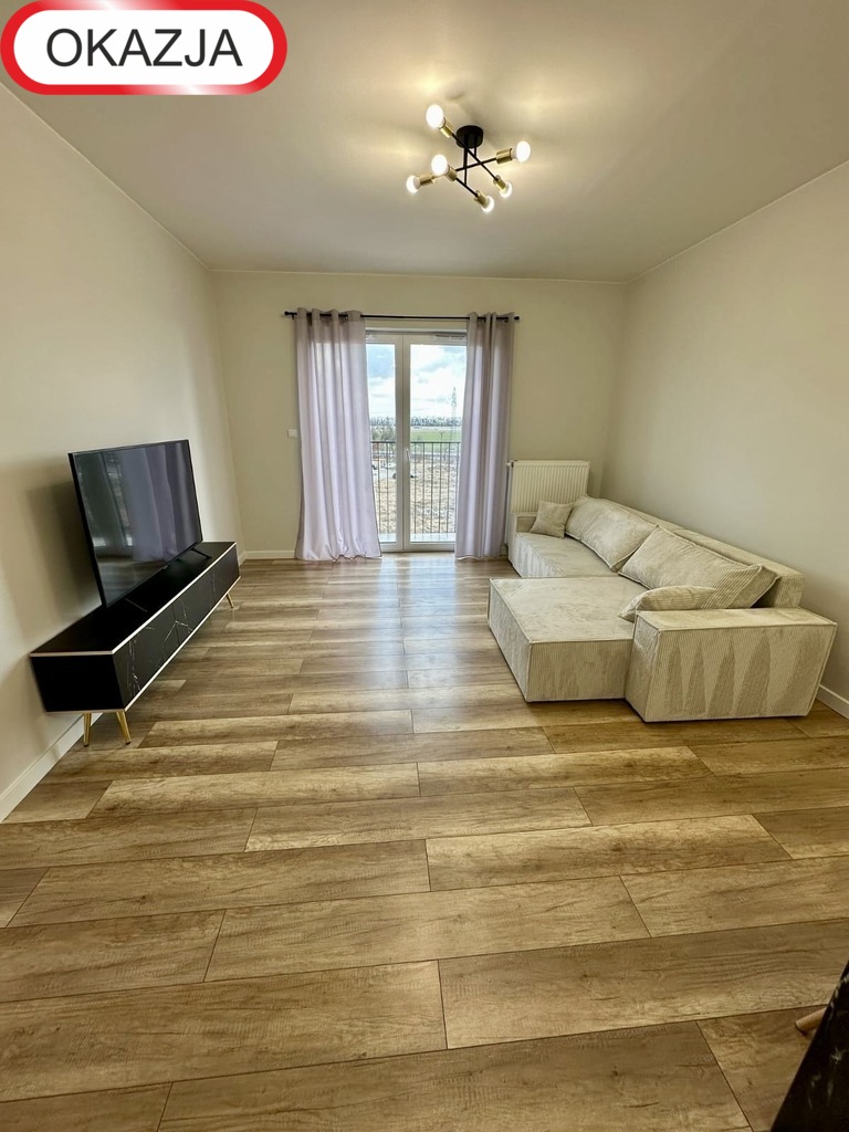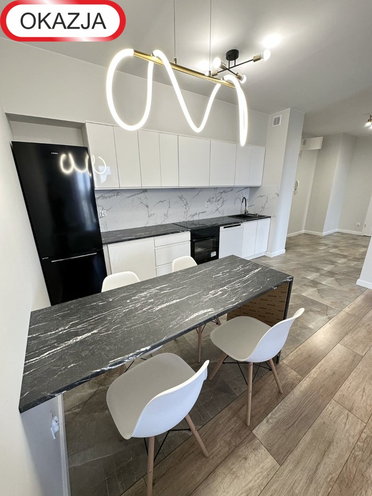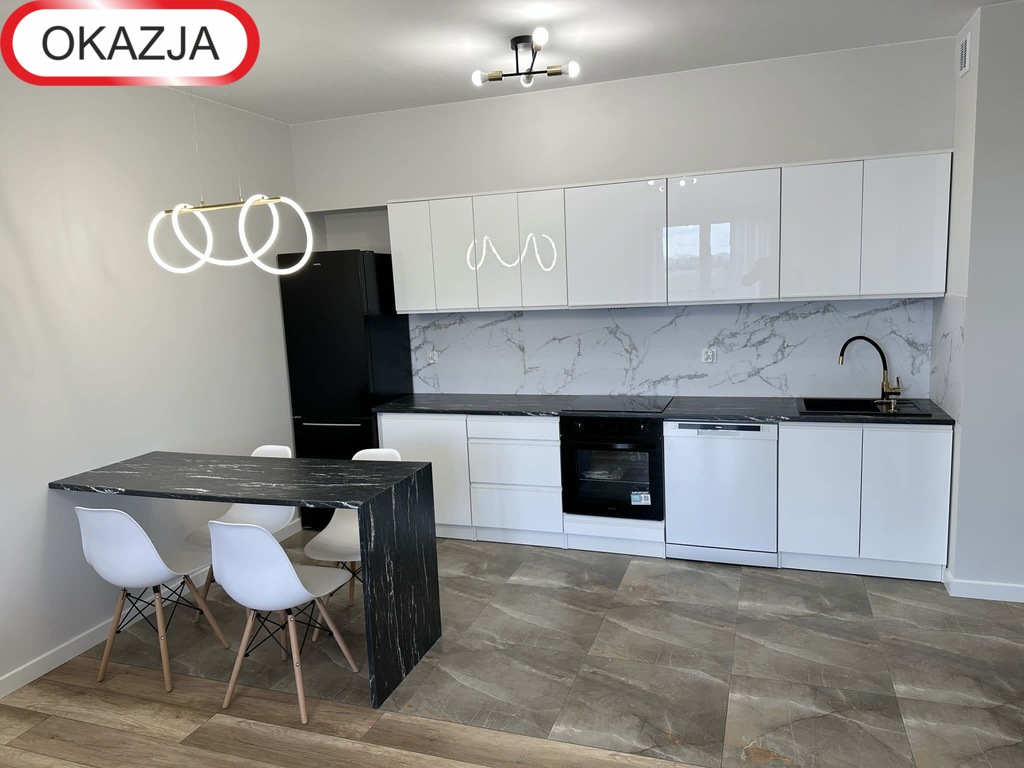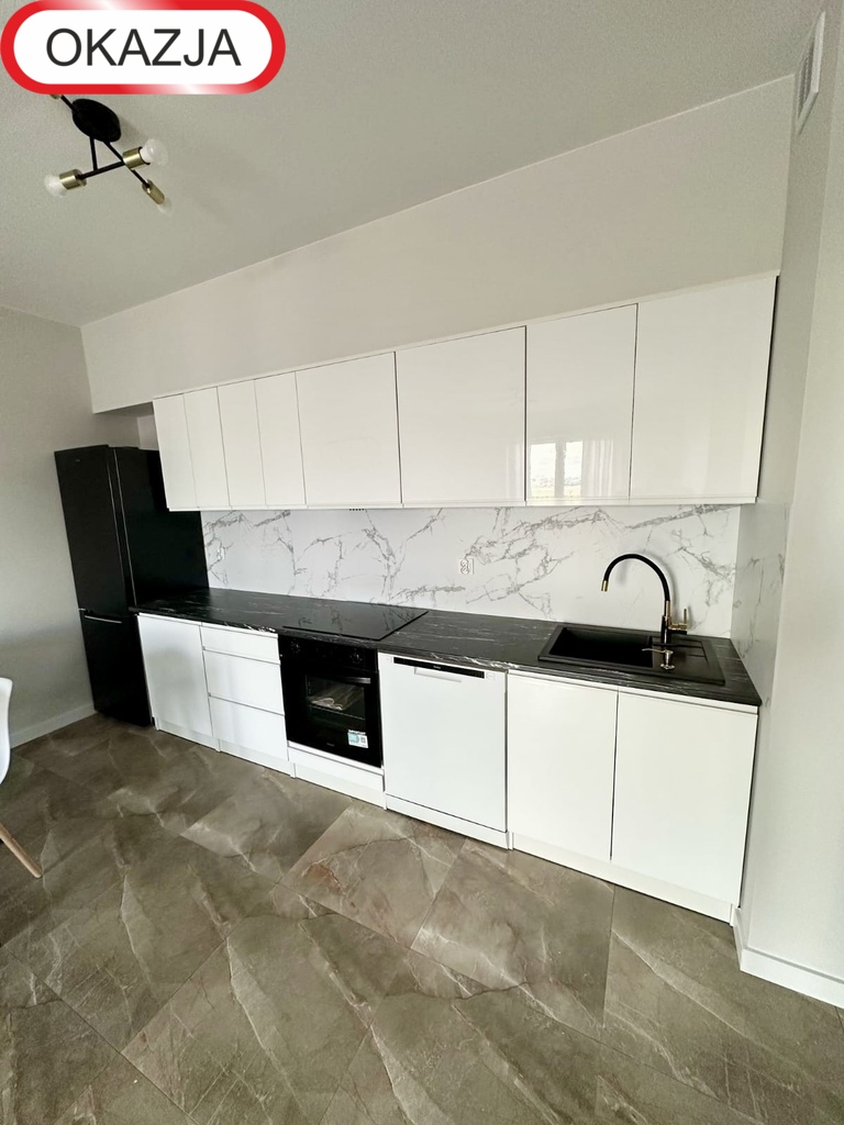 Mieszkanie składa się z trzech pokoi - przestronnego salonu z aneksem kuchennym, sypialni, dodatkowego pokoju, łazienki oraz korytarza i wykończone jest wysokiej jakości materiałami.