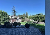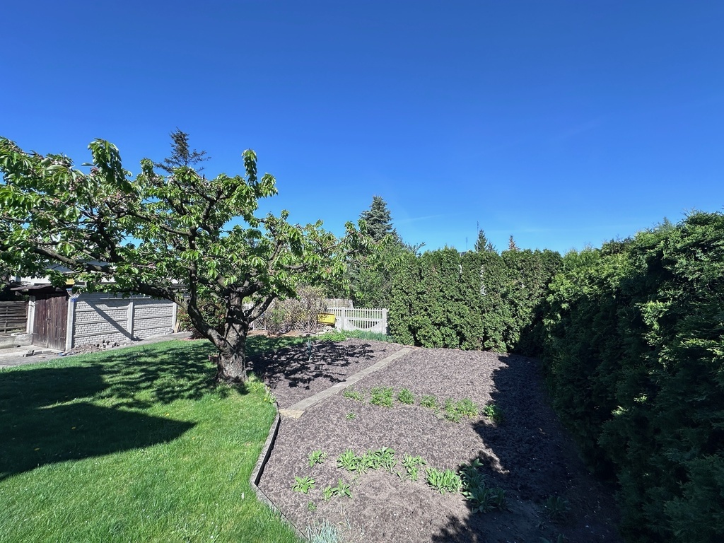 Ogród z licznymi nasadzeniami bardzo zadbany