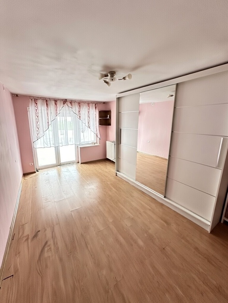 - w sypialni na podłodze panele , ściany pomalowane, wyjście do ogrodu