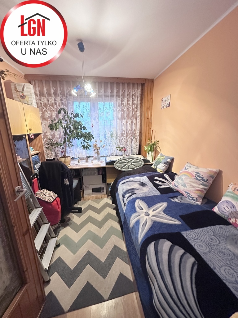 W mniejszej sypialni ( około 8 m2) na podłodze panele, ściany gładzone pomalowane , okna pcv , wystawa okien północ